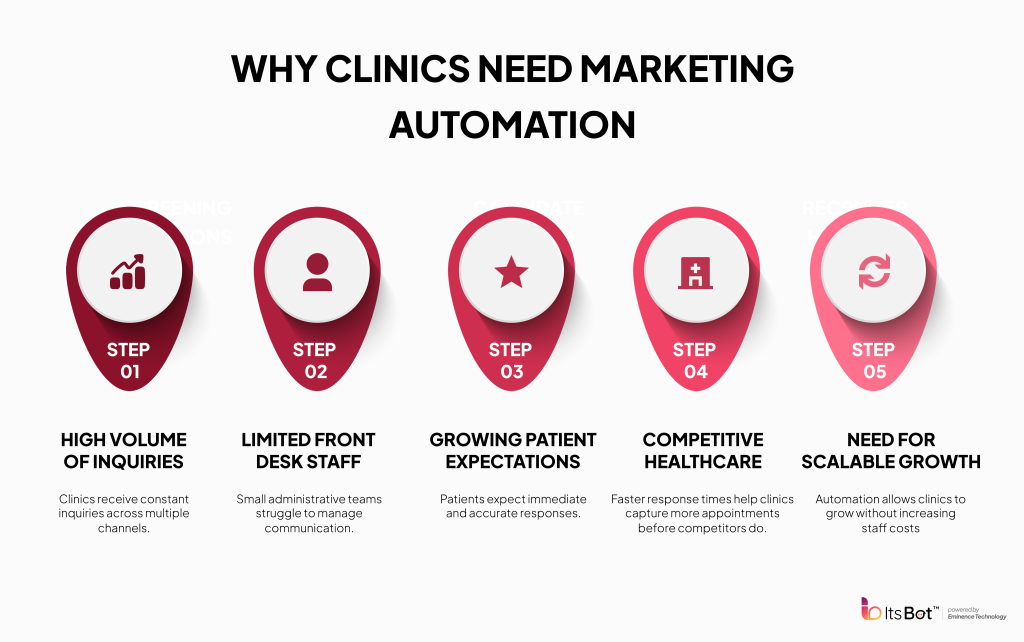 AI marketing automation matters for more than convenience. It boosts clinic growth, enhances patient satisfaction, and improves operational efficiency. AI helps patients book appointments by understanding what they need. When patients reach out, they are seeking healthcare at that time. If clinics respond quickly, there is a greater chance to book them.