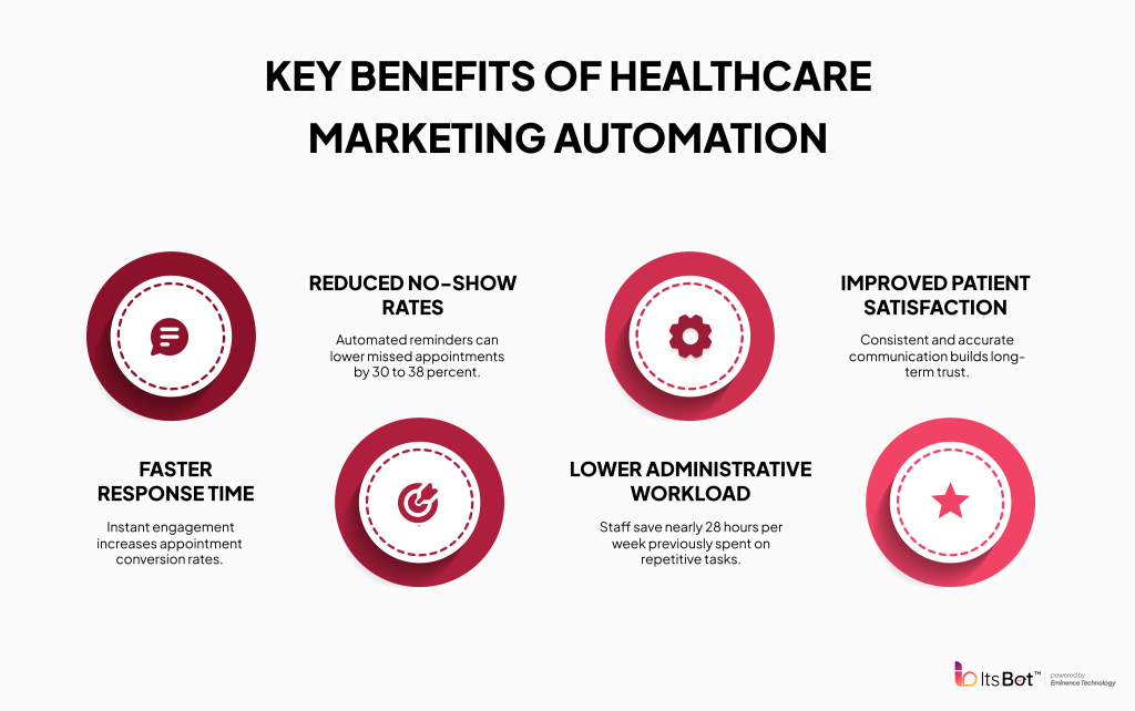 AI marketing automation offers clinics and hospitals many benefits. Once implemented, it boosts patient engagement and streamlines daily operations.