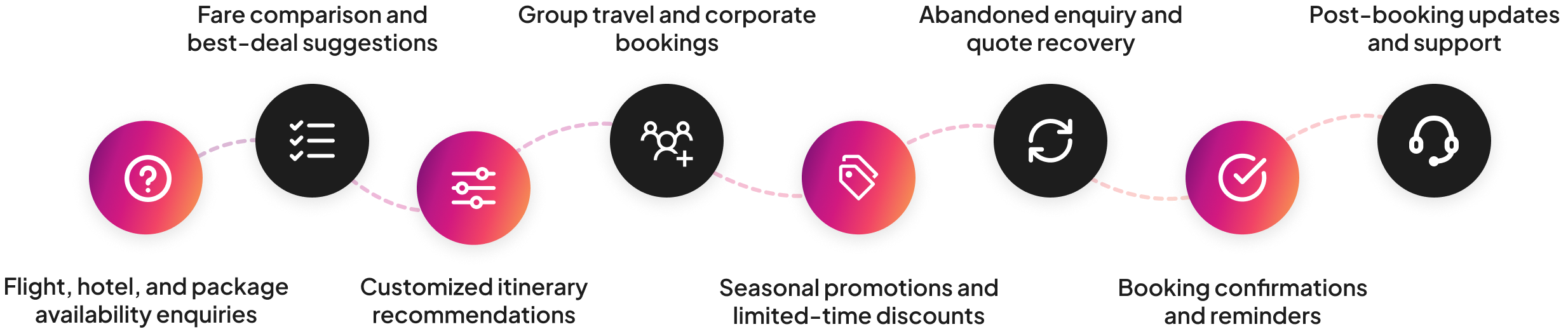 Each agent supports a critical stage of the travel lifecycle, from enquiry handling and lead qualification