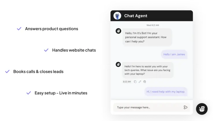 - "AI Agents": Software agents such as Chat Agent, Email Agent, Voice Agent, WhatsApp Agent, etc., that automate business functions.
